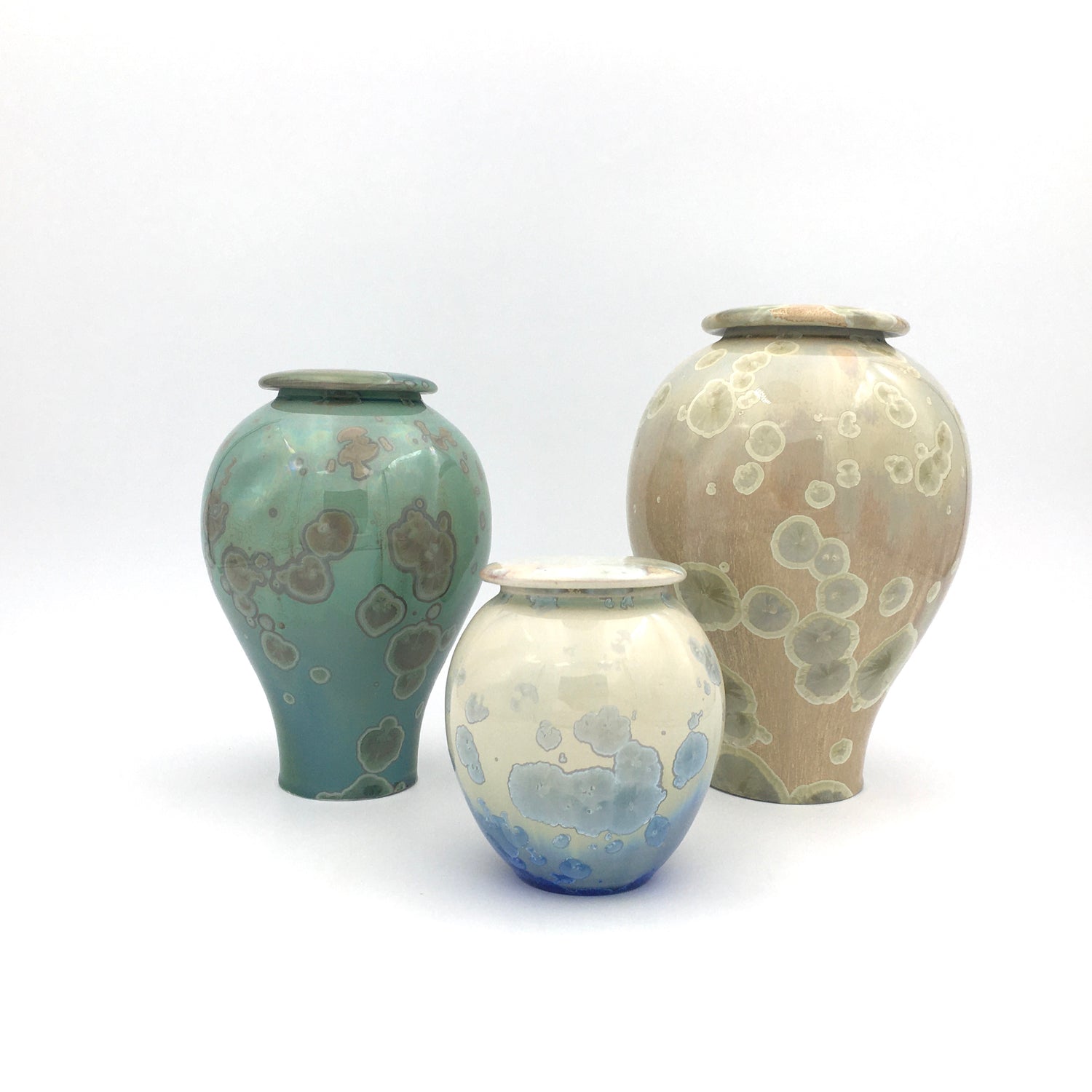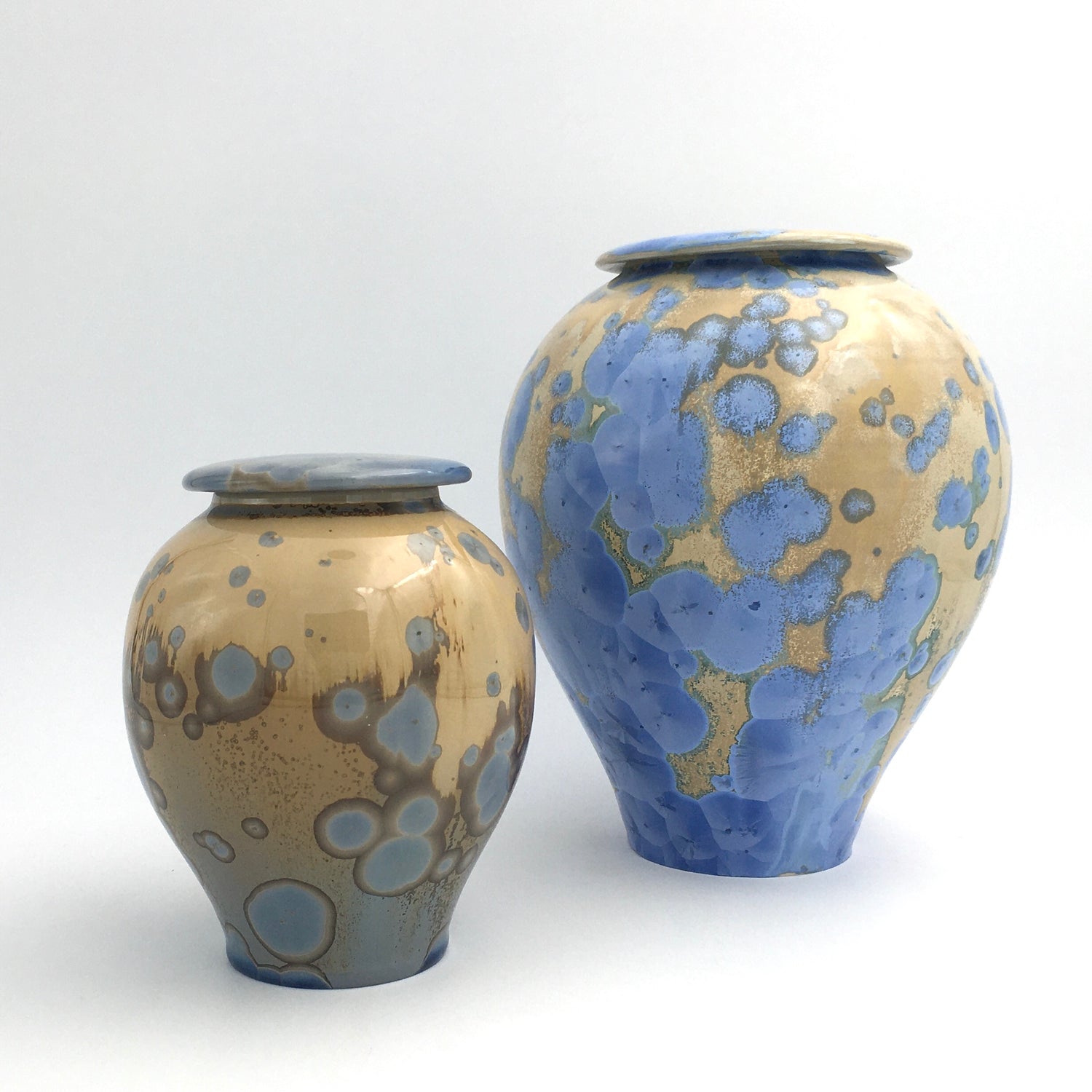 Each urn is handthrown on a potters wheel by Marc Lemieux of Black Dog Pottery in Kingston, Ontario.