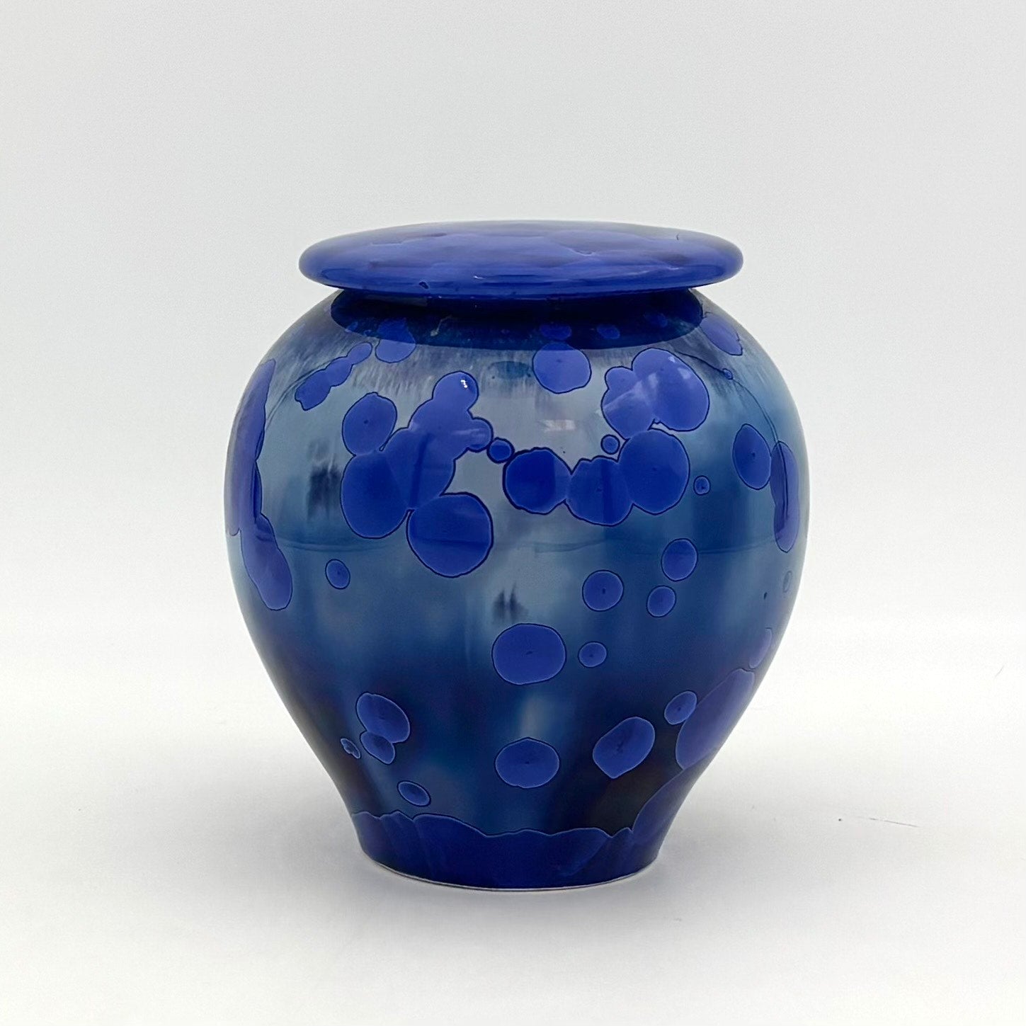 The glazes I use have taken many years of testing to develop - crystalline glazes are an especially technical glaze to work with – the crystals form unique shapes during the cooling cycle such that no two pieces are alike. Each piece takes about three weeks to complete from start to finish.