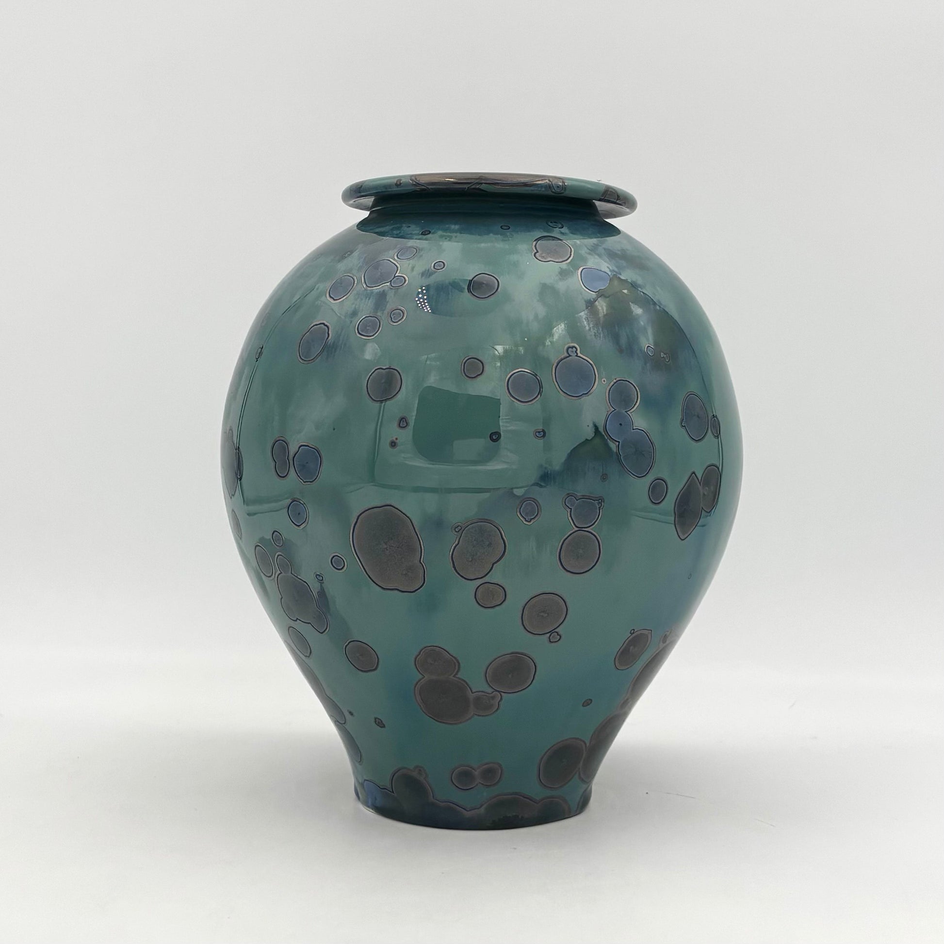 The glazes I use have taken many years of testing to develop - crystalline glazes are an especially technical glaze to work with – the crystals form unique shapes during the cooling cycle such that no two pieces are alike. Each piece takes about three weeks to complete from start to finish.