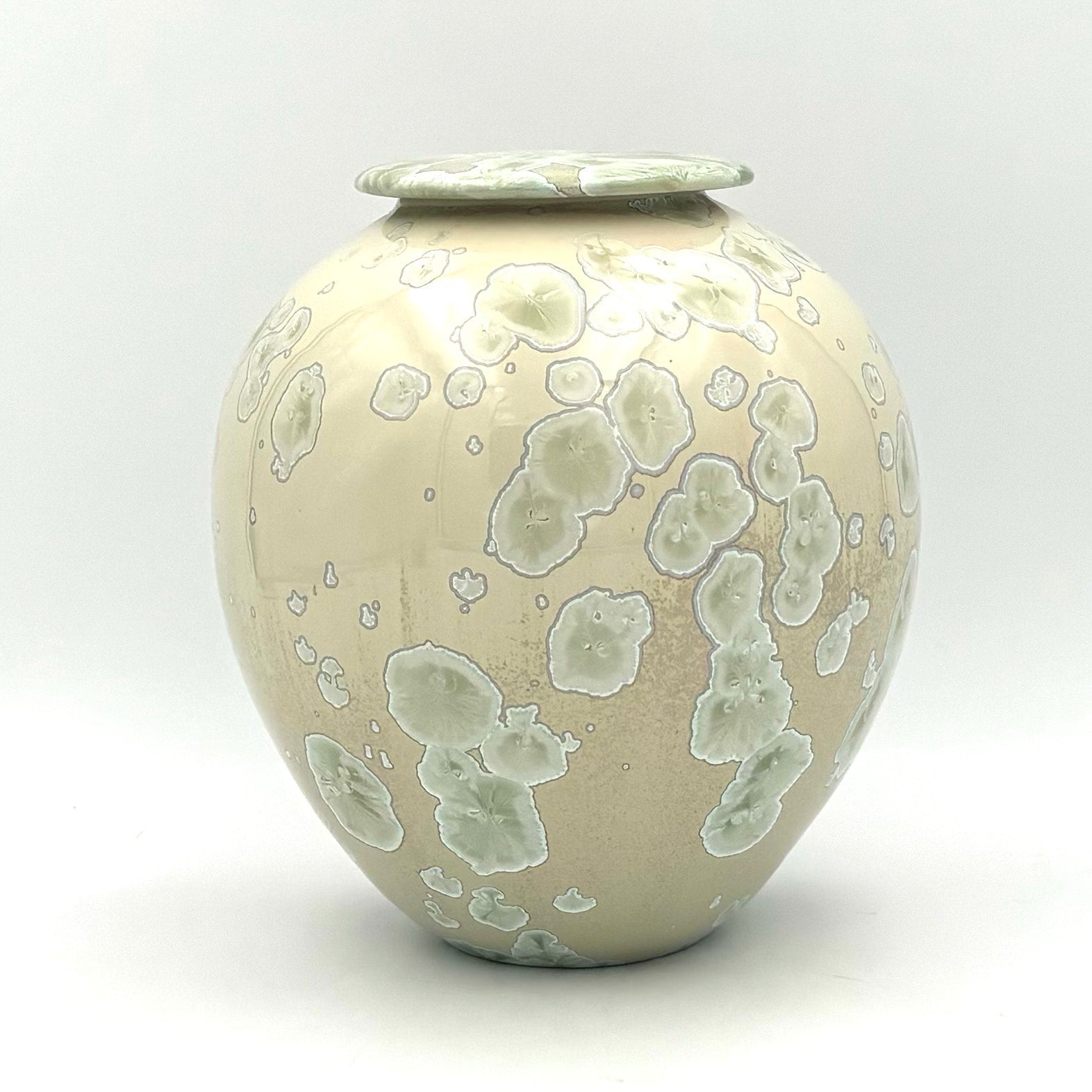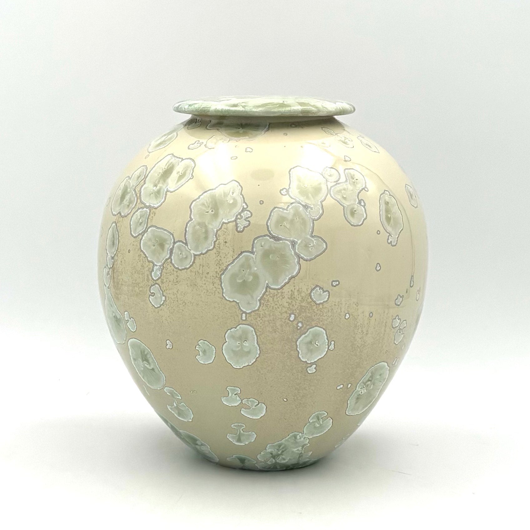 The glazes I use have taken many years of testing to develop - crystalline glazes are an especially technical glaze to work with – the crystals form unique shapes during the cooling cycle such that no two pieces are alike. Each piece takes about three weeks to complete from start to finish.