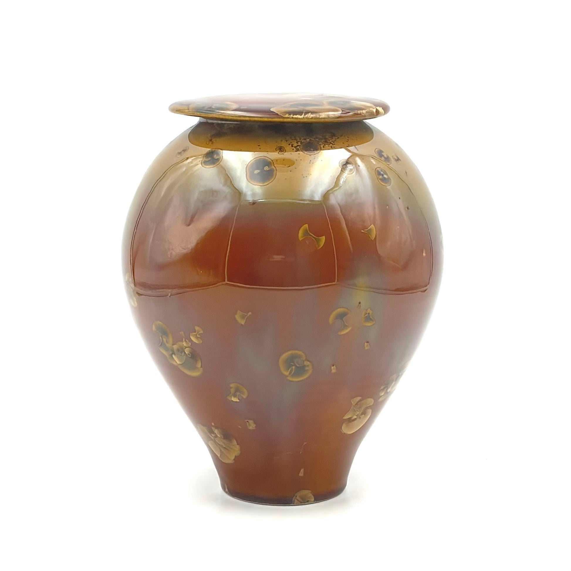 The glazes I use have taken many years of testing to develop - crystalline glazes are an especially technical glaze to work with – the crystals form unique shapes during the cooling cycle such that no two pieces are alike. Each piece takes about three weeks to complete from start to finish.