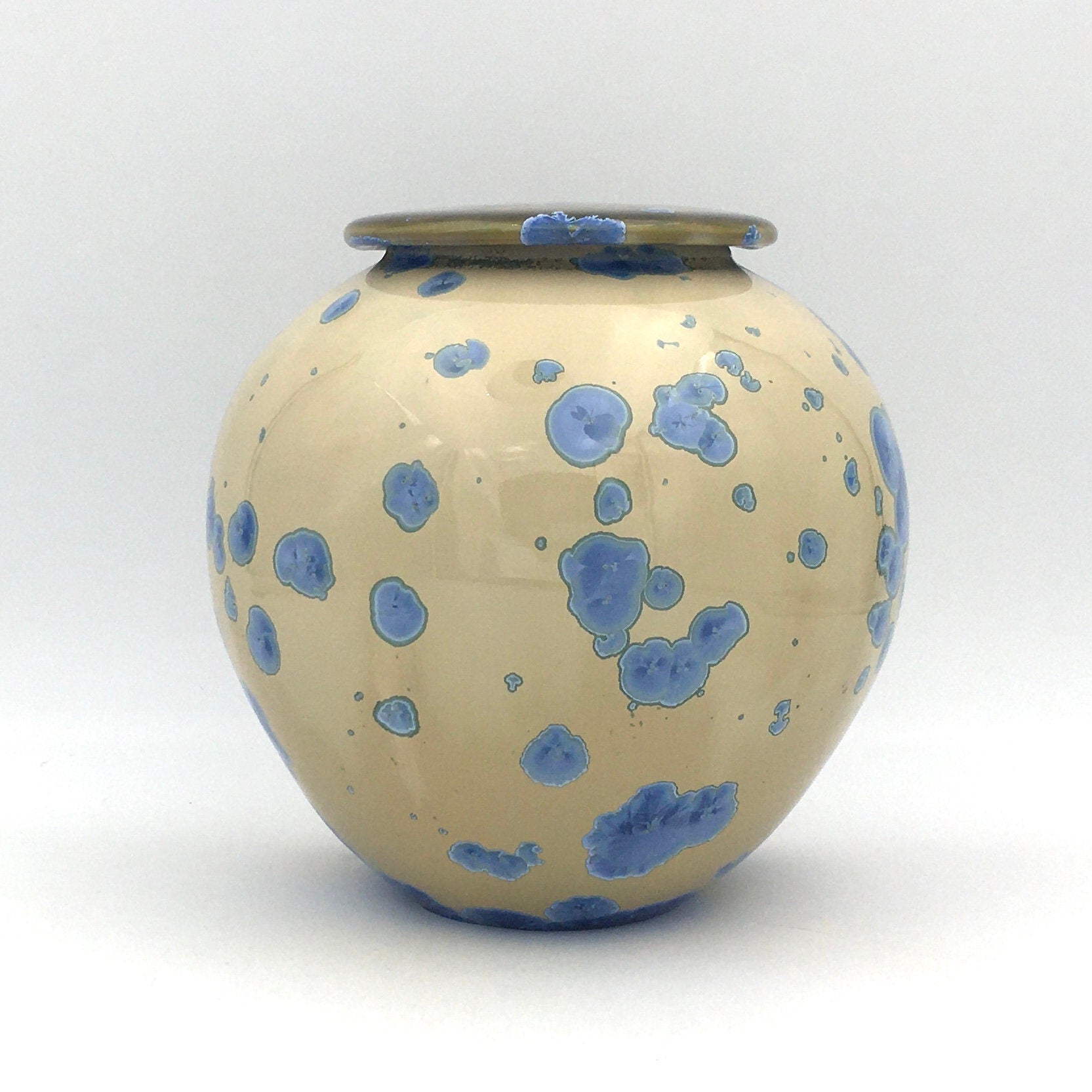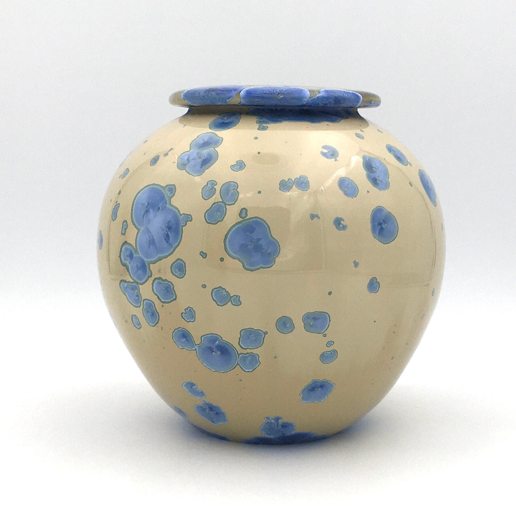 The glazes I use have taken many years of testing to develop - crystalline glazes are an especially technical glaze to work with – the crystals form unique shapes during the cooling cycle such that no two pieces are alike. Each piece takes about three weeks to complete from start to finish.